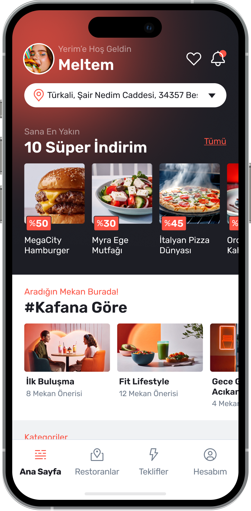 Yerim, herkesin "ne yesem?" sorusuna pratik ve ekonomik çözümler sunar. Kullanıcılarımız, bulundukları konuma göre restoranları keşfedebilir, promosyonlar hakkında bilgi alabilir ve özel indirimlerden yararlanabilirler.